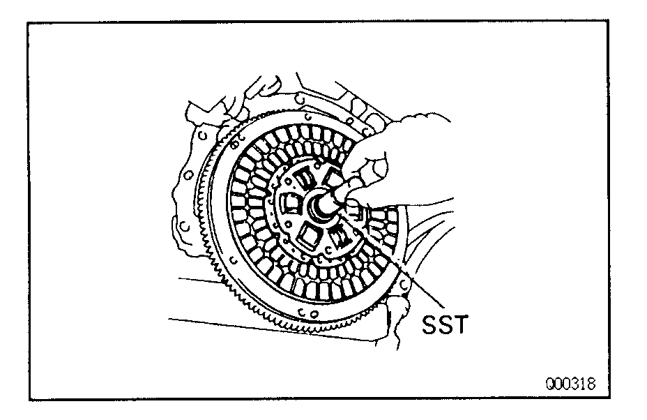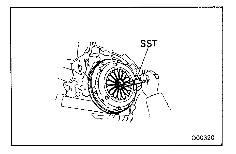 (a)Insert the SST in the clutch disc, and then set them and the clutch cover in position.
