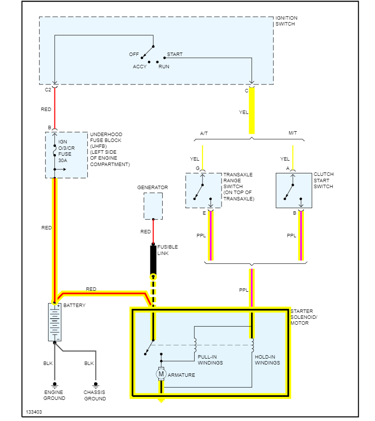 Then when it will not start, check the purple wire at the starter solenoid for power in the start position to see if there is power coming.