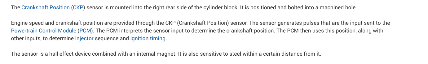 And in the diagrams down below, I have included a description, location, and instructions for the removal and installation of the CKP on your vehicle. Please go through these guides and get back to us with how everything turns out.