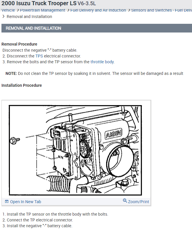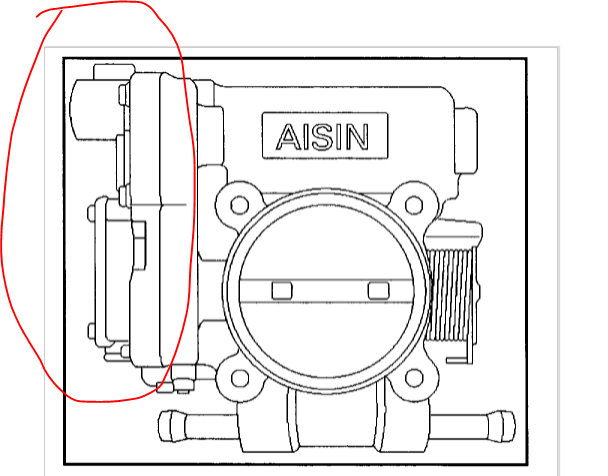 The throttle position sensor mounted on the side of the throttle body (see diagram).