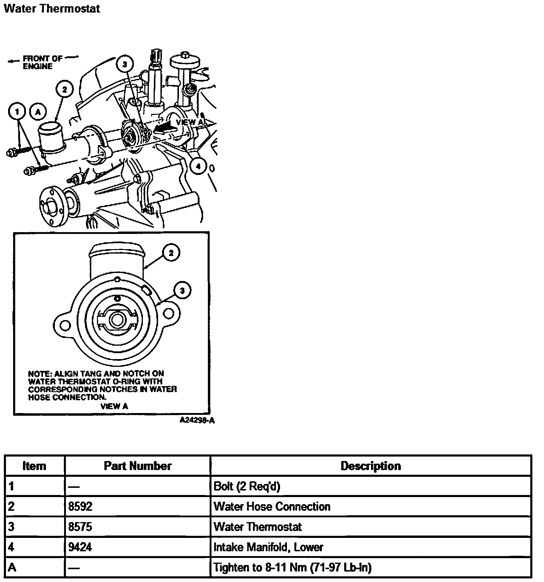 a. Apply Pipe Sealant with Teflon D8AZ-19554-A or equivalent meeting Ford specification WSK-M2G350-A2 and ESR-M18P7-A to the threads of the engine coolant temperature sensor, all vacuum fittings, heater elbows, and electrical fittings (if equipped).