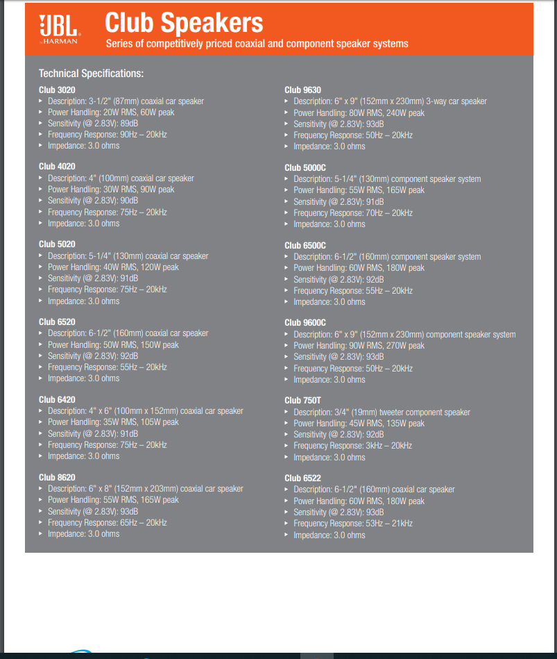 I was curious to know what the RMS and peak wattage rating was for the jbl 96360 39200 factory rear 6 x 9 speakers that are part of the 2004 Hyundai XG350L Infinity sound system.