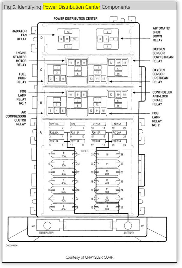 It is a Jeep sport I believe. Not the Grand etc. When you say power distribution box you mean the fuse box, right? All the fuses in the fuse-box are good. I keep checking that continually as I go. I will look over the diagram you presented. This is frustrating. I appreciate your help.