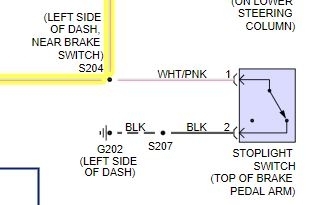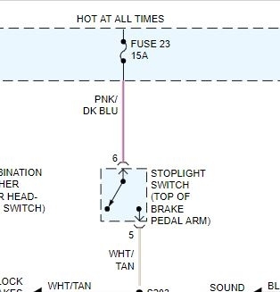 I have no brake lights at all on my vehicle listed above Sport. I have no power to the brake switch on the lower column (pink wire), but I have power to and through fuse 22, which by the wiring schematic I have is supposed to supply power to that switch.
