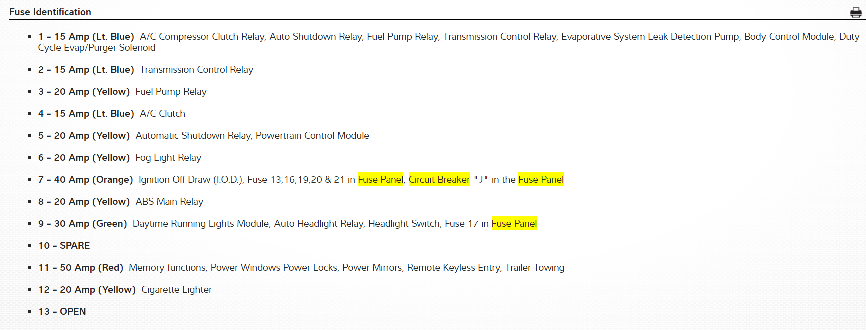 The fuse panel diagram you included is found under the dash, but the slot for the turn signal flasher is empty, as is the hazard flasher. These two cylindrical relays are not present anywhere. The combined turn signal/flasher relay is just behind the dash, slightly to the right beneath the steering wheel. I know for a fact that this is the turn signal relay because we have made the turn signal work by playing with this relay. Please read a previous post from me with the exact same title as this one. In it I explained all of the troubleshooting that has gone on so far and I've tried to explain that the fuse/relay diagrams in the Jeep manual and in maintenance manuals are NOT what is seen in my Jeep. I can provide photos if necessary.
