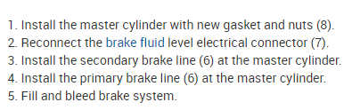 Here is the information you requested. Here are a few tutorials for you to view on how to replace a brake master cylinder and how to bleed the system after the repair has been made: