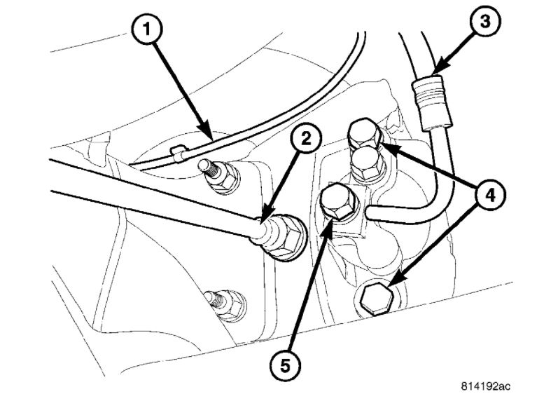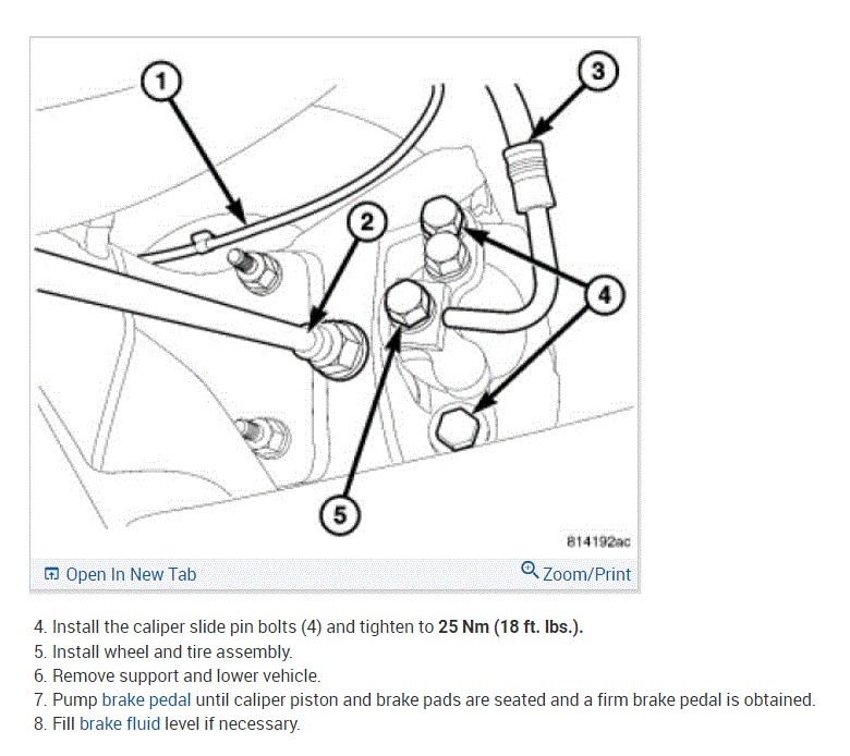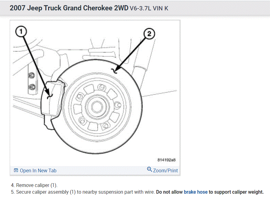 5. Secure caliper assembly (1) to nearby suspension part with wire. Do not allow brake hose to support caliper weight.