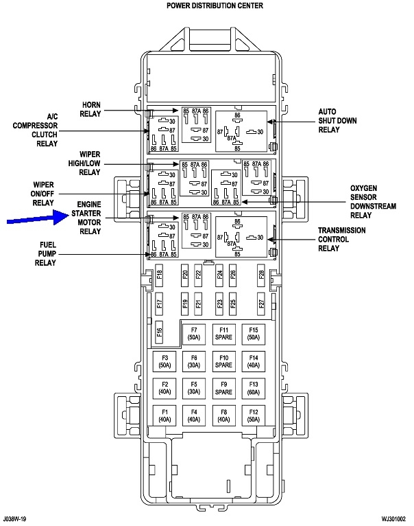 Assuming everything else works, and just the starter doesn't, remove the starter relay from the under-hood fuse box. It's shown in the second drawing. Even though Chrysler was nice and labeled the terminals in the socket, I'm not going to refer to those just yet. That's to show that except for newer models that stuff a bunch of computer controls in the circuit, the following tests apply to all cars that use a starter relay. You can use your voltmeter again, but for this type of problem, the inexpensive, standard test light can be much more accurate, and faster. Here's a link to an article about using a test light: