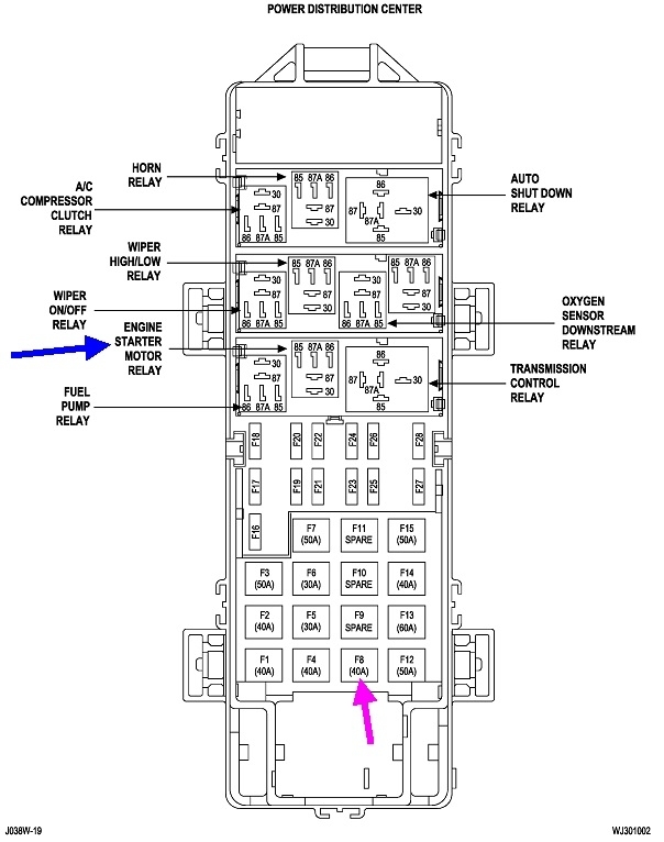 If 12 volts is missing on terminal # 30, check the large 40-amp maxi-fuse, # 8. I pointed that out in the fifth drawing with a purple arrow, . . . because purple is cool. It's rare to find this one blown except after crash damage.