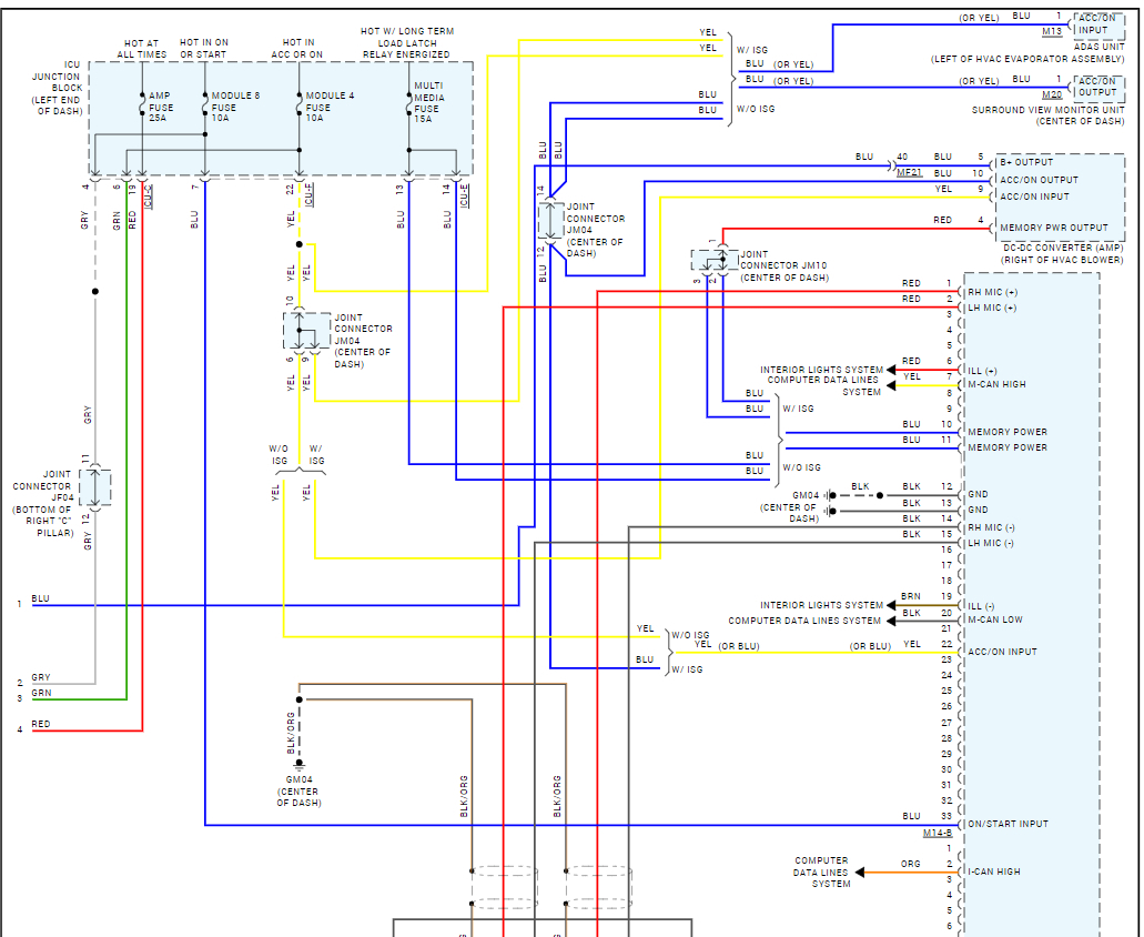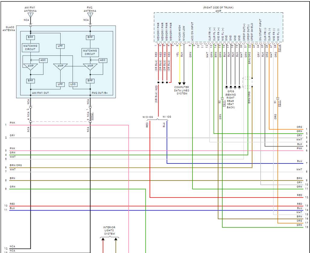 Hi, I have an EX-model which includes a Bose system. I saw on another post a condensed wiring diagram of the speakers themselves however I was hoping there was a chart/pathway diagram that shows the signal/wiring path from the radio to the built in amplifier and then a diagram chart of input/output of the amplifier itself