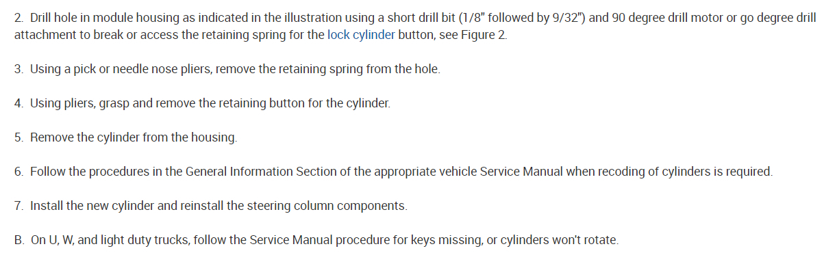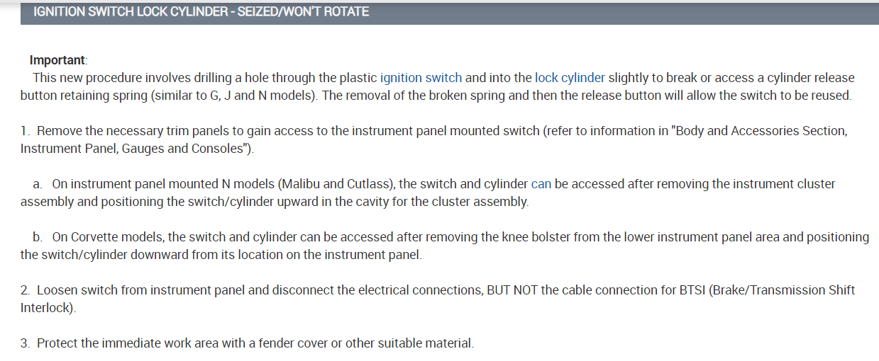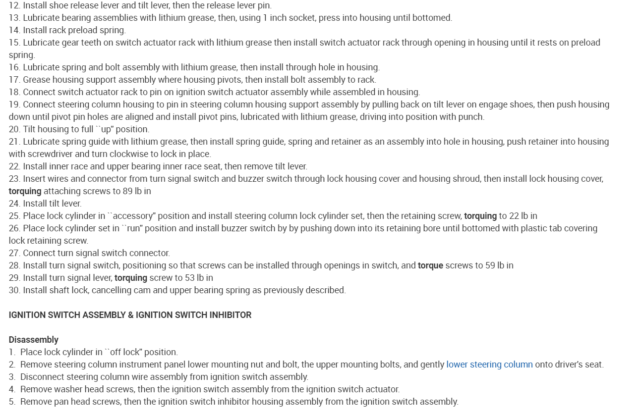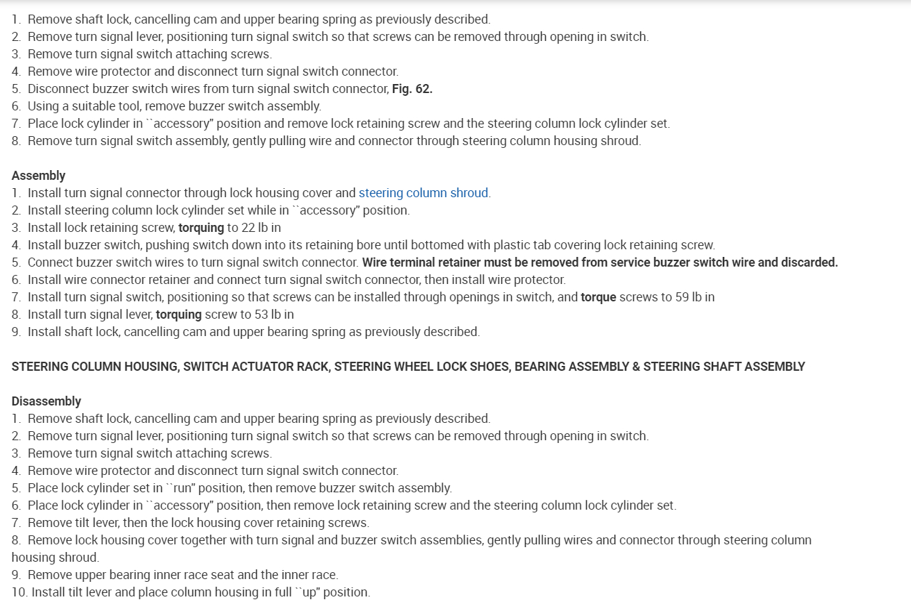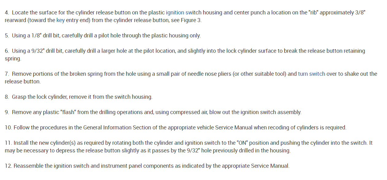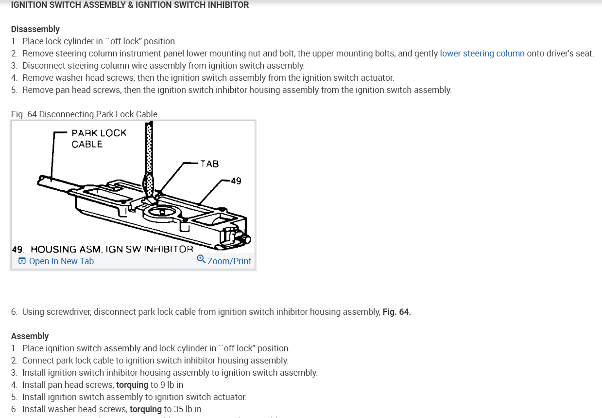 You need ignition switch itself (located in steering column) or the ignition lock cylinder (where the key inserts) ? Let me know and I will post the proper replacement procedures.