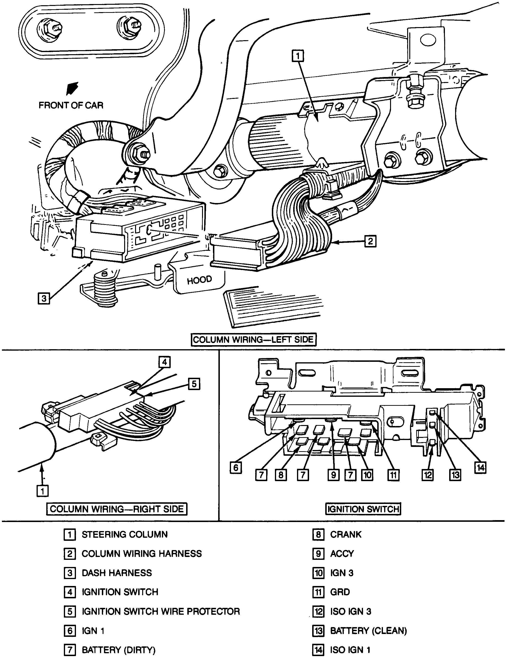 The ignition switch is hardwired. The wiring harness with the column harness connector must be replaced with the ignition switch. DO NOT splice the new switch to the existing column wiring harness.