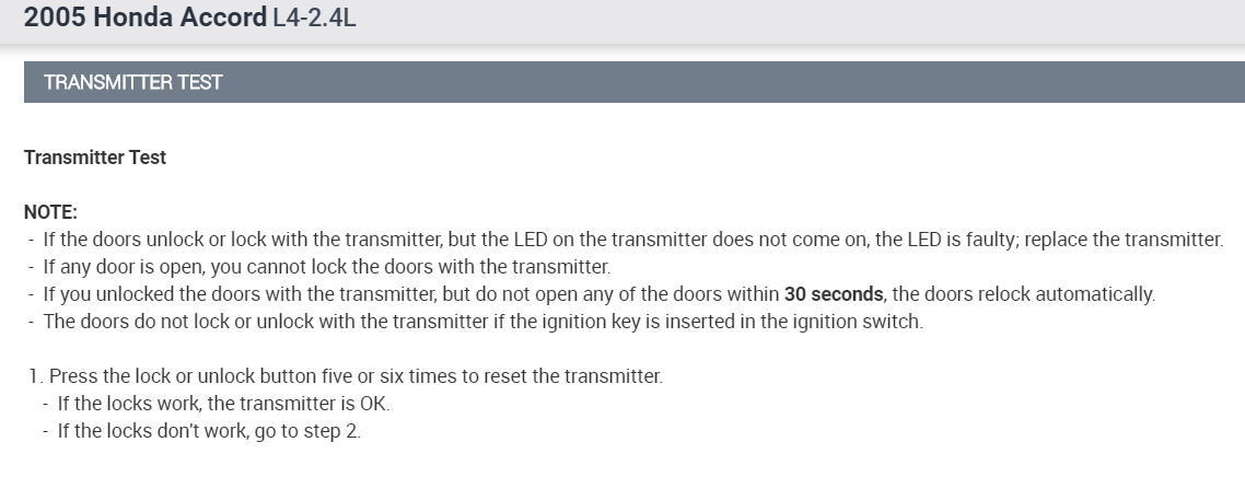 Confirm that you can hear the sound of the door lock actuators after each transmitter code is stored.