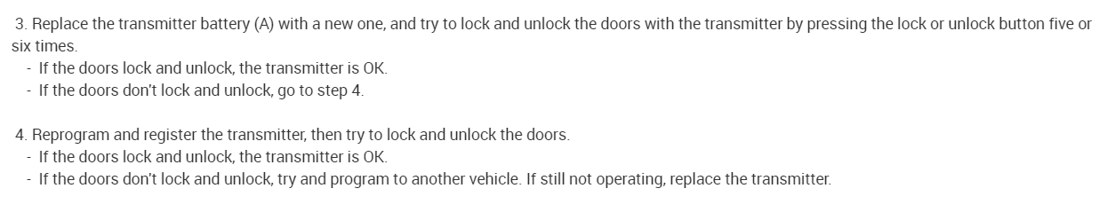 12. Confirm you can hear the sound of the door lock actuators within 1 to 4 sec, then push the transmitter lock or unlock button again, or the code will not be stored.