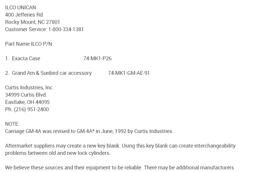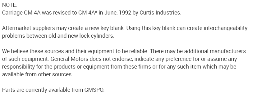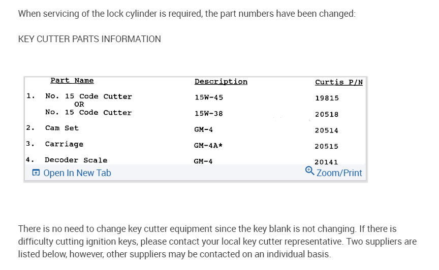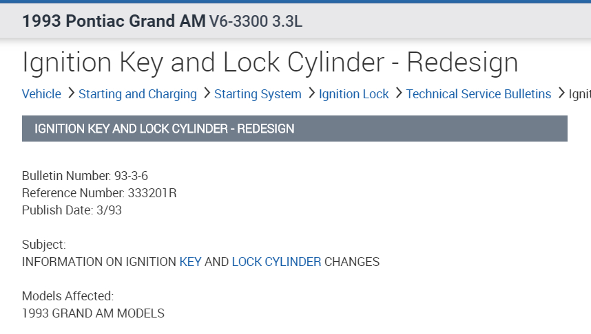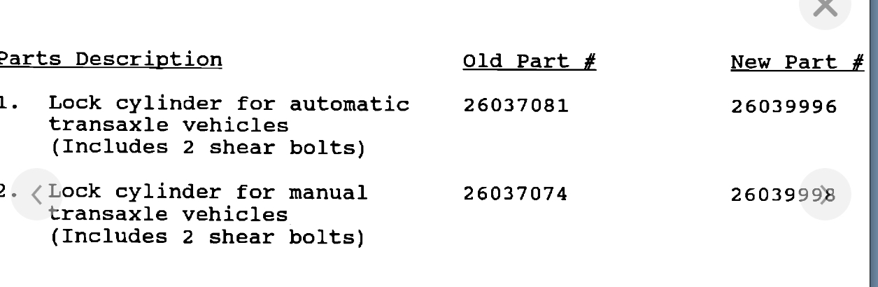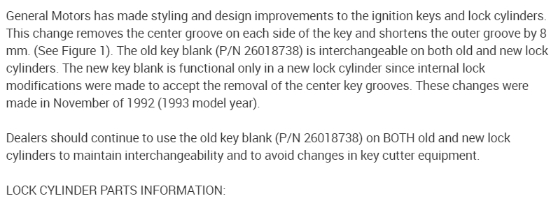 I have included all the information that you have requested in the diagrams down below. I have also included a Technical Service Bulletin (TSB) on the new revised lock cylinders and keys that GM made for your vehicle. Please, fell free to ask, should you have any more questions for us. That's what we are here for.