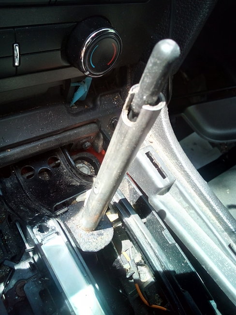 It sounds like he broke the shift interlock assembly in the shift assembly. If that's the case, The Brake Shift Interlock Actuator (BSIA) is not serviced separately. If a new BSIA (Brake Shift Interlock Actuator) is required, you have to install a new transmission selector lever assembly.