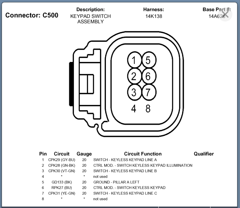 Please review the wiring diagram below and the pinout for the keypad.