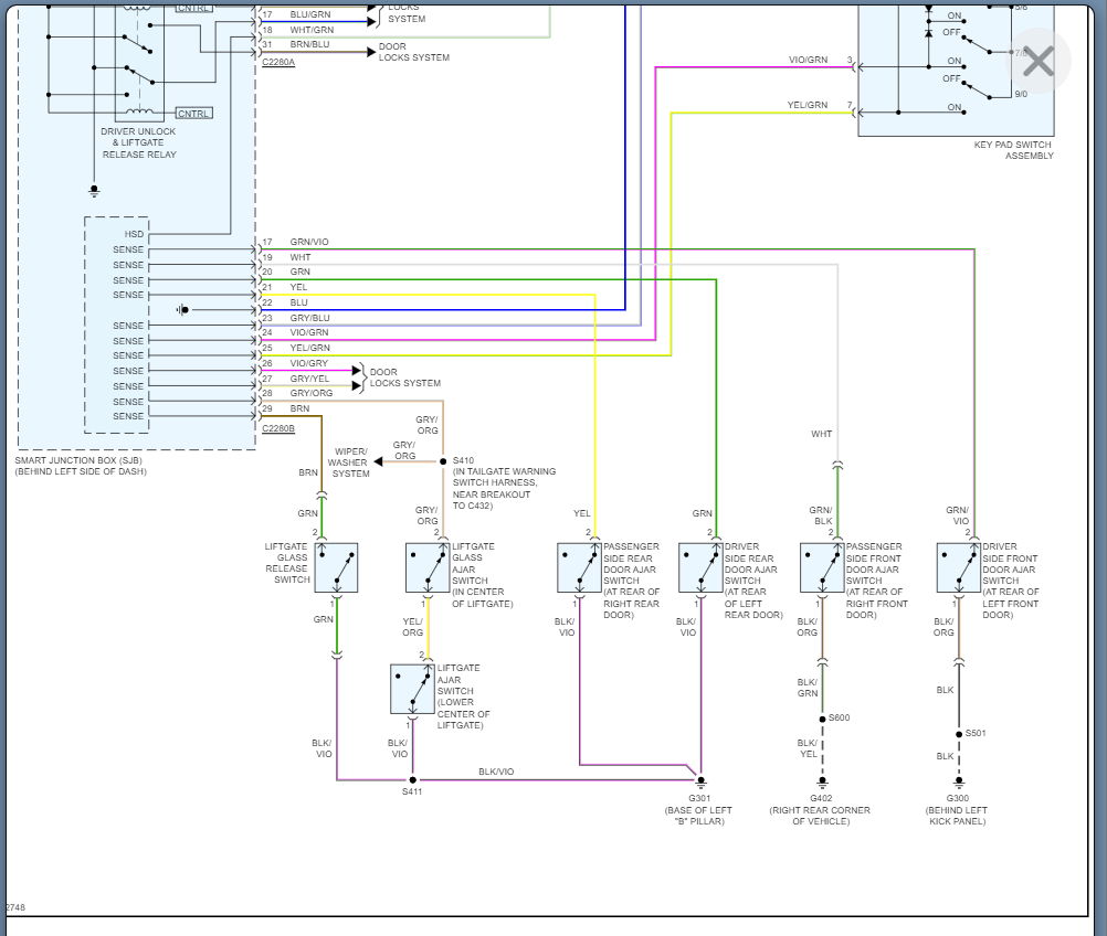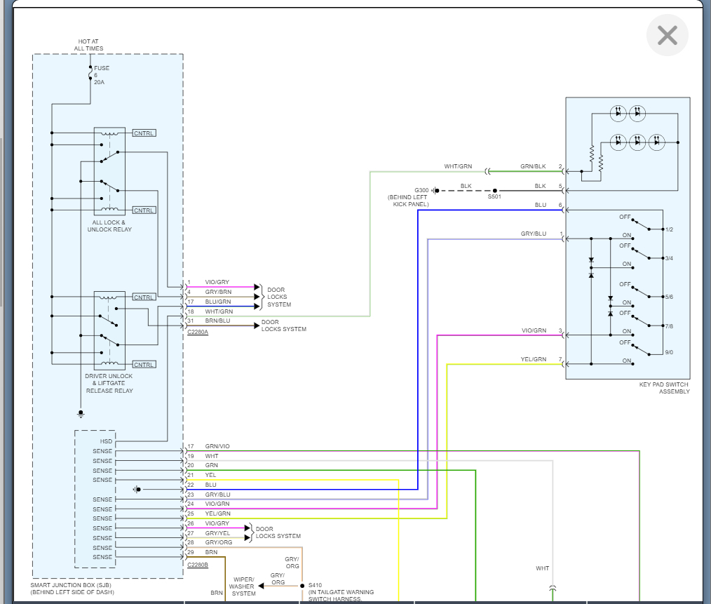 I would pick up the keypad. So, we need to check the voltage going to the pad and if there is none then we go back to the SJB and check for voltage coming out.