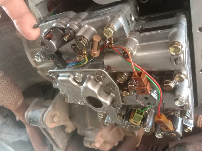 When the fluid was changed the pan and filter were removed and cleaned. The attached pics are of the solenoids.