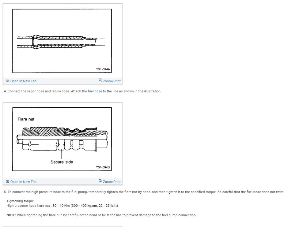1. Reduce the internal pressure of the fuel lines and hoses and perform the following operations.