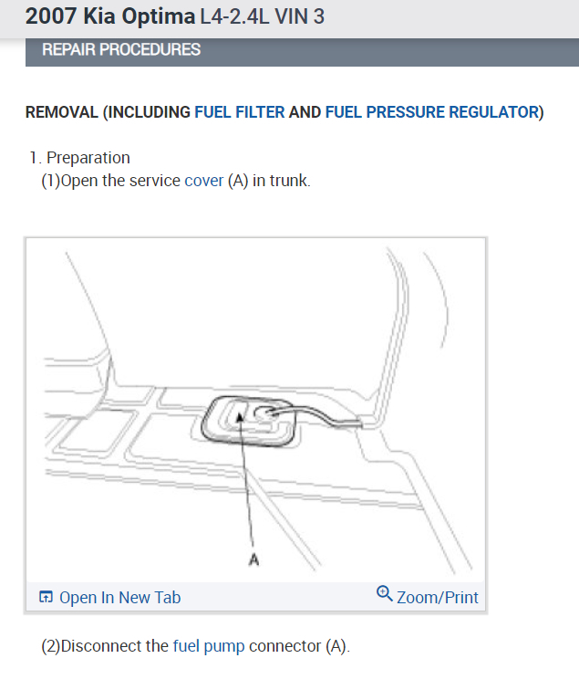 - Disconnect the fuel pump harness connector in the trunk room.