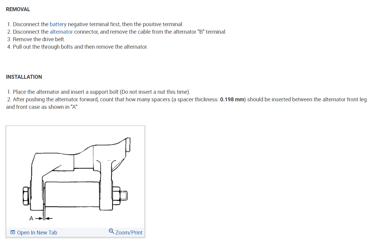 1. Place the alternator and insert a support bolt (Do not insert a nut this time.)