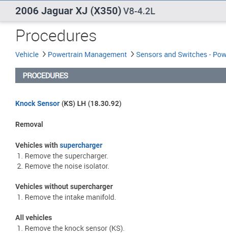 As far as the sensor, if this is supercharged, the supercharger and insulator will need to be removed. If there is no supercharger, the intake will need to be removed the sensor is located under the intake. See pic 1