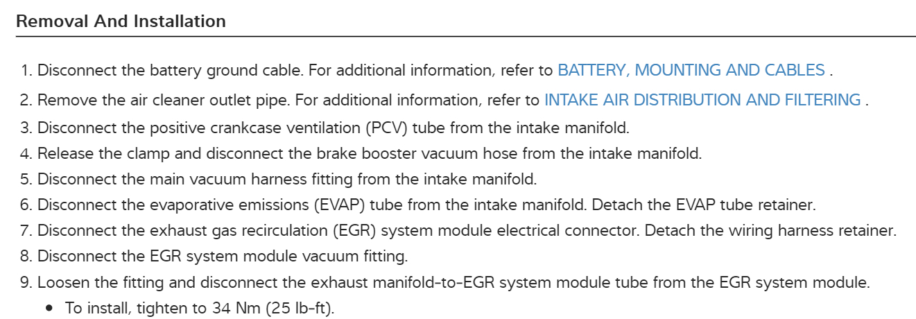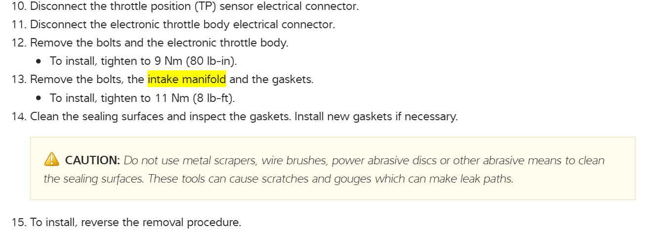 Now, the remaining pictures are the directions for removing and installing the intake manifold. Take a look through the directions and let me know if you have questions or if I can help in any way.