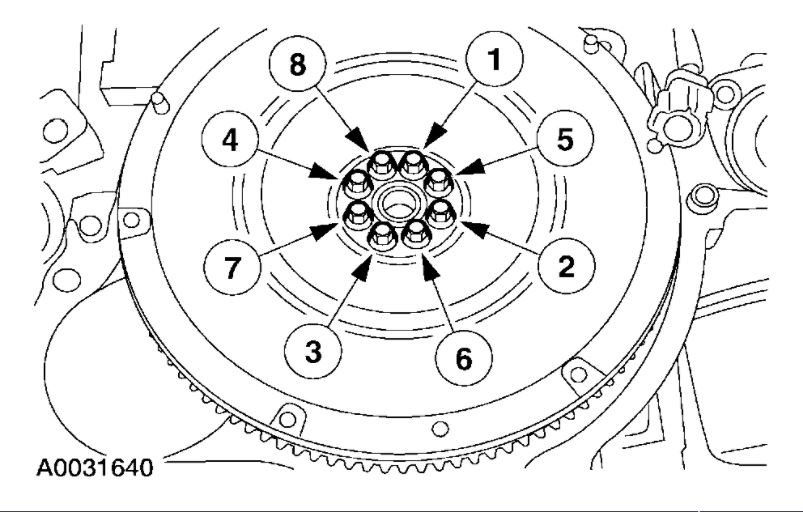 1. Install the flexplate. Tighten the bolts in two stages in the sequence shown.