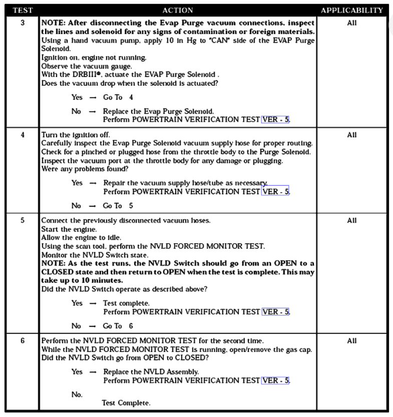 The normally closed valve in the NVLD is intended to maintain the seal on the evaporative system during the engine off condition. If vacuum in the evaporative system exceeds 3" to 6" H2O (0.75 to 1.5 KPA), the valve will be pulled off the seat, opening the seal. This will protect the system from excessive vacuum as well as allowing sufficient purge flow in the event that the solenoid was to become inoperative.
