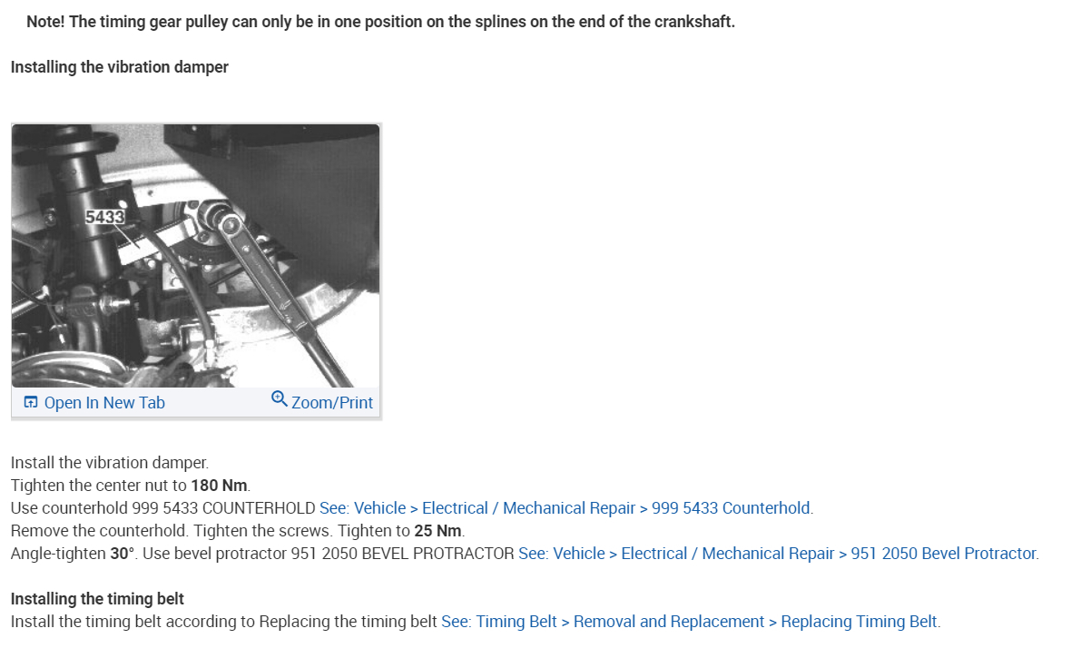 That's exactly how it looks in the photos I sent. Were you able to see the red lines on the timing gear and in the other photo the cam marks lined up as they should with the notches in the top cover. Now my problem is trying to get the crank nut to 133 ftlbs and the 4 bolts on the balancer to 44 ftlbs. I'm afraid to go that high. It seems like they will snap. Those are the specs though according to Volvo.