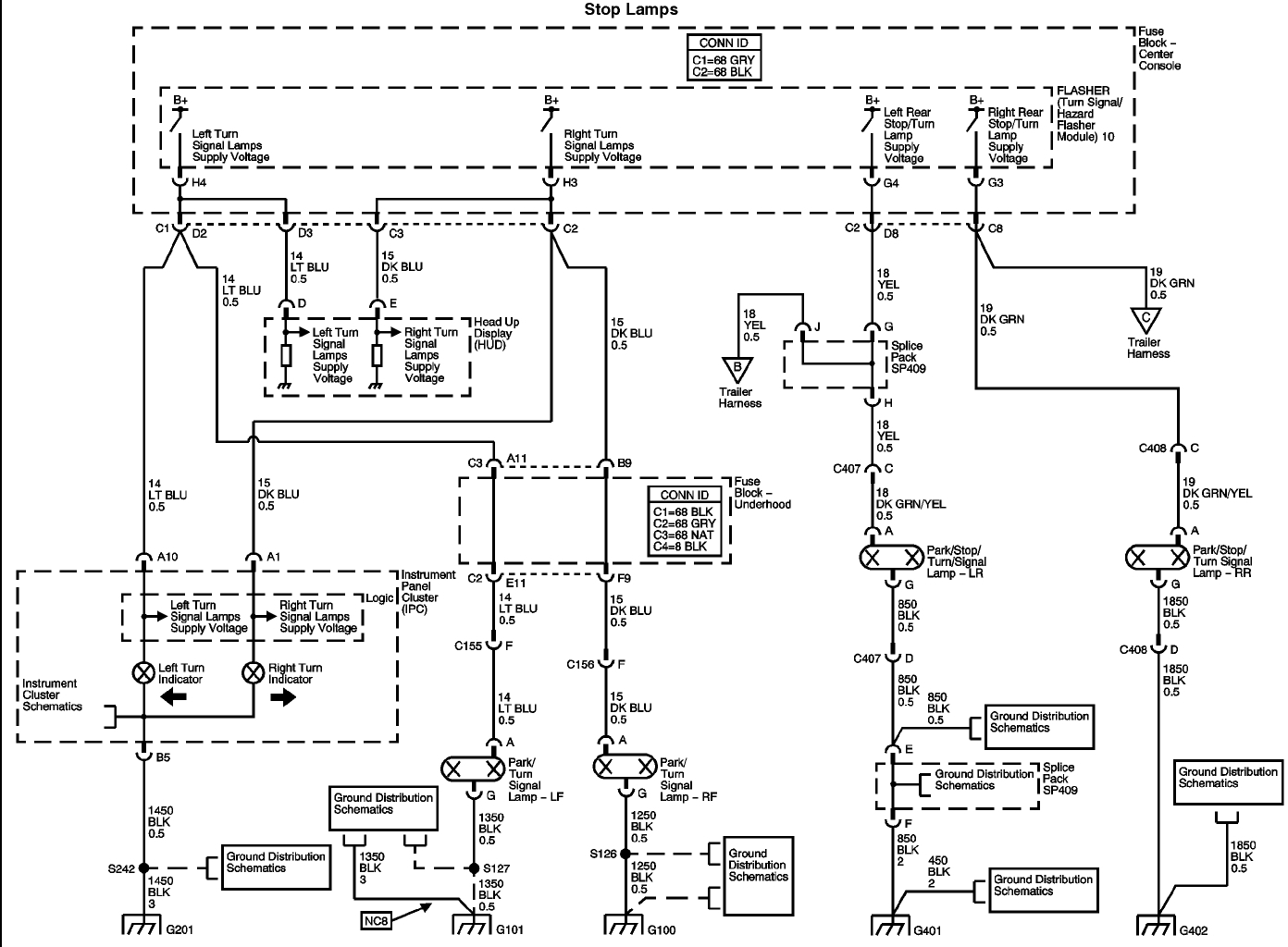 Left brake light out. Right turn signal and the left one blinks too.