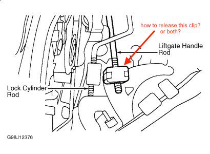 I'm replacing the lock actuator on this SUV listed above and am on the 99 yard line. I have the actuator unbolded, the latching mechanism unbolted, the yellow clips on the side latching rods unclipped but there is another rod, the one that connects the latch handle on the outside of the lift gate to the latching mechanism inside the door. It is also attached with a "clip" but, for the life of me, I can not figure out how this clips works, that is, I can not determine how it 'unclips' , can not see a 'tab' or a hinge side on the clip, can not tell if it opens up, down, inboard or outboard. Can you provide advise, or a picture of this plastic 'quick disconnect' clip ? I don't want to break it. Again, its rod that connects the interior mechanism to the exterior flipper handle. With this problem overcome, I can remove the mechanism and replace the actuator (rod) then reassemble.