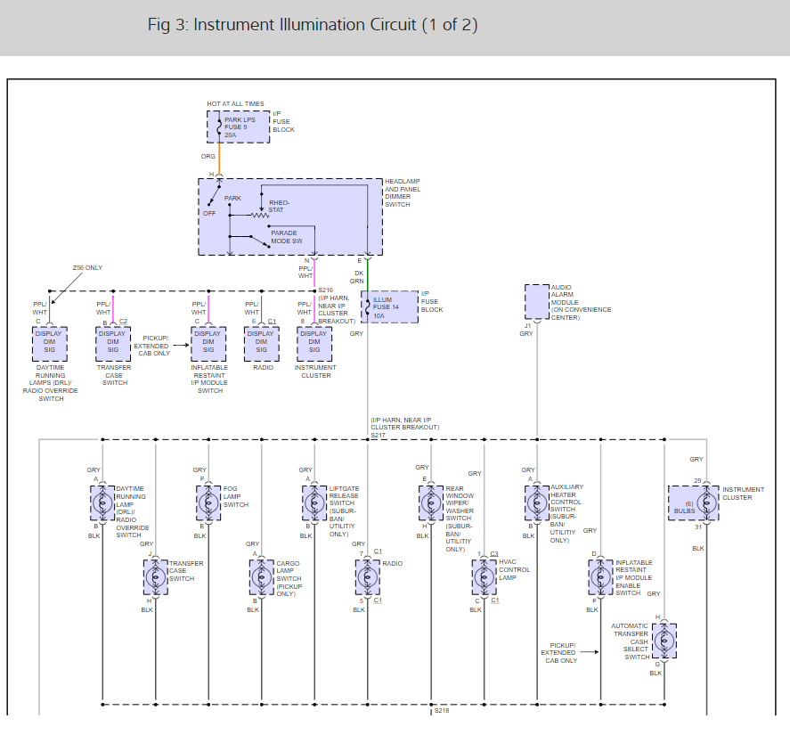 Here is a guide and the running light wiring diagram so we can test to see where we are losing power.
