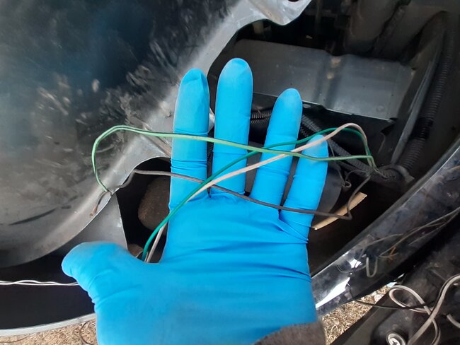 The high beam on both sides are powered by a green wire. Same thing here. When the high beam lights are on, those wires should have power.