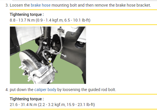 put down the caliper body by loosening the guided rod bolt.