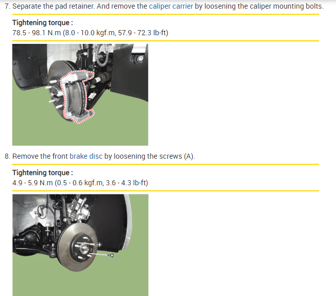 Separate the pad retainer. And remove the caliper carrier by loosening the caliper mounting bolts.