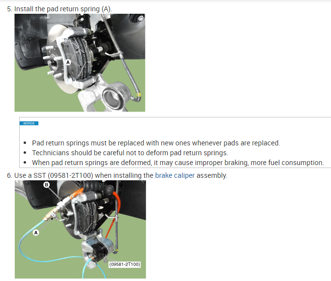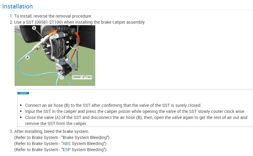 Use a SST (09581-2T100) when installing the brake caliper assembly.