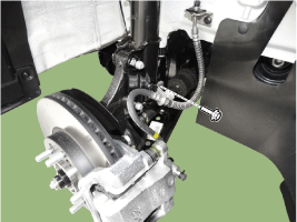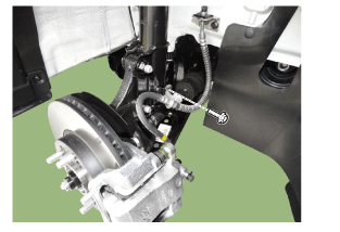 Install the brake hose mounting bolt with the brake hose bracket at the shock absorber.