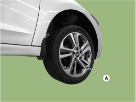 Be careful not to damage the hub bolts when removing the front wheel and tire (A).