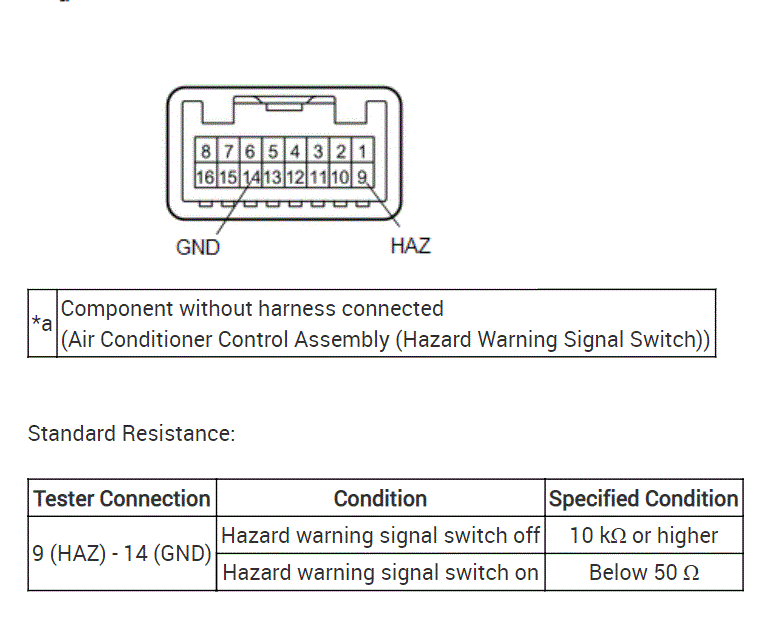 INSPECT AIR CONDITIONER CONTROL ASSEMBLY (HAZARD WARNING SIGNAL SWITCH)