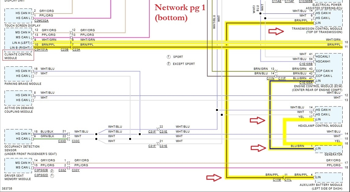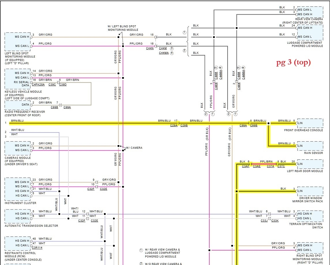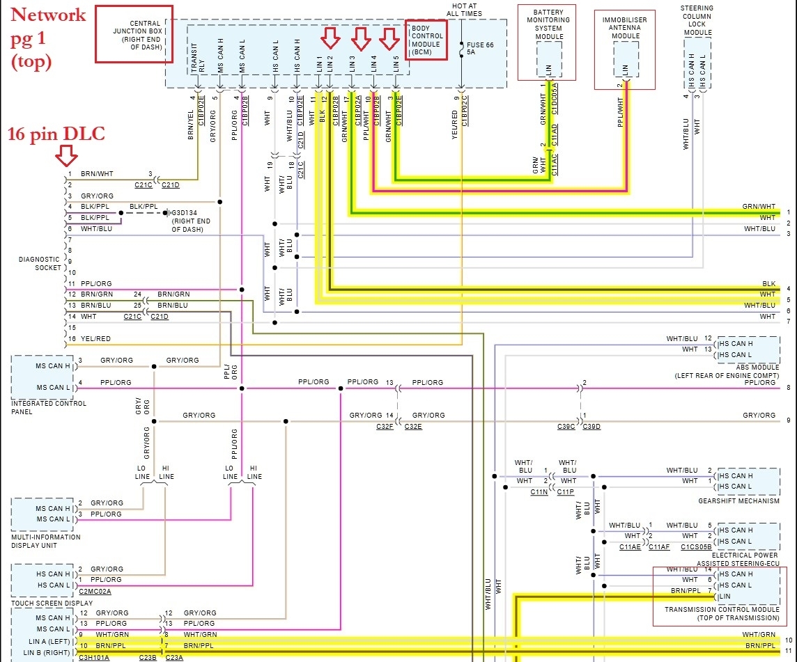 Hello, is there a specific module that is setting the LIN Bus code? A quick look at the network wiring diagrams show there are multiple Lin bus networks for this vehicle. To begin with, Lin Bus is a 1 wire network that is 0-12volt signal, The Body Control Module (BCM) shows 5 Lin Bus networks coming from it. So far I think I count 34 modules on the Lin, but these modules will also talk on other networks as well, depending on how critical they are. Ill get these diagrams ready and highlight all the Lin wires, Theres 3 pages of Network diagrams, so it will take a couple minutes.
