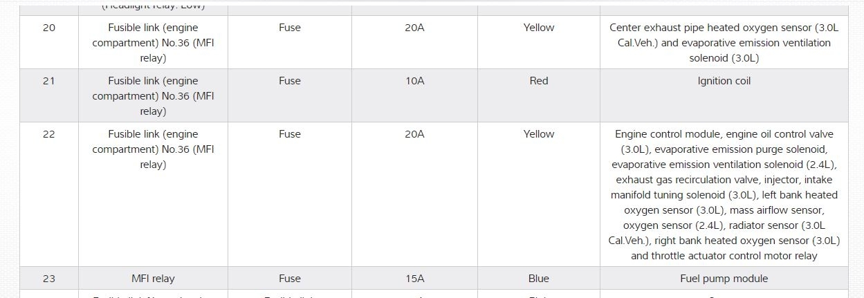 Please note that fuses 2, 8 and 22 supply the engine control module. I hope this is helpful and if you need any further assistance we will be happy to help in any way we can and thank you for using 2CarPros.