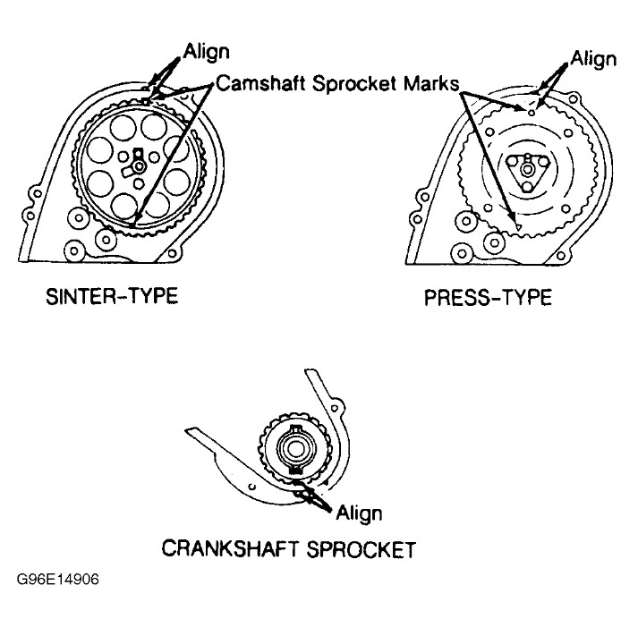 would like to know where to position all timing marks before I remove belt and tensioner