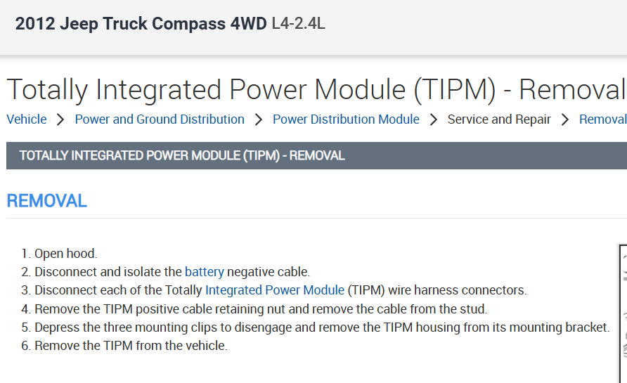 This is because they call the BCM the TIPM and it is easy to replace because it itself learns so there is no programming necessary. Check out the images (below). Let us know if you need anything else.