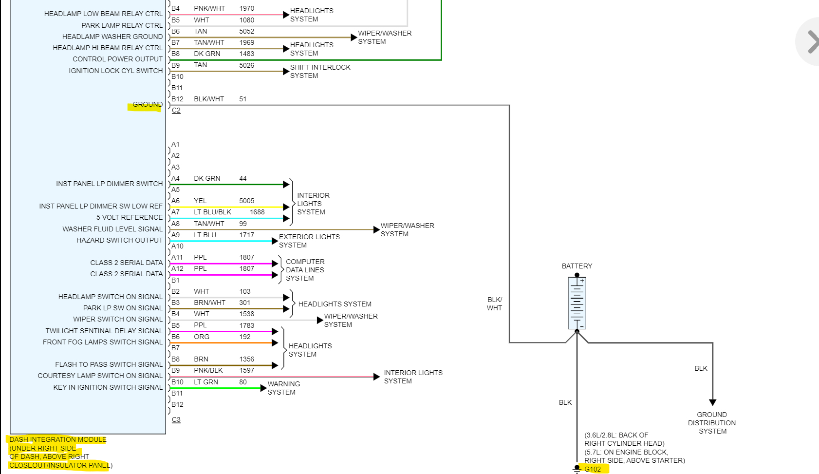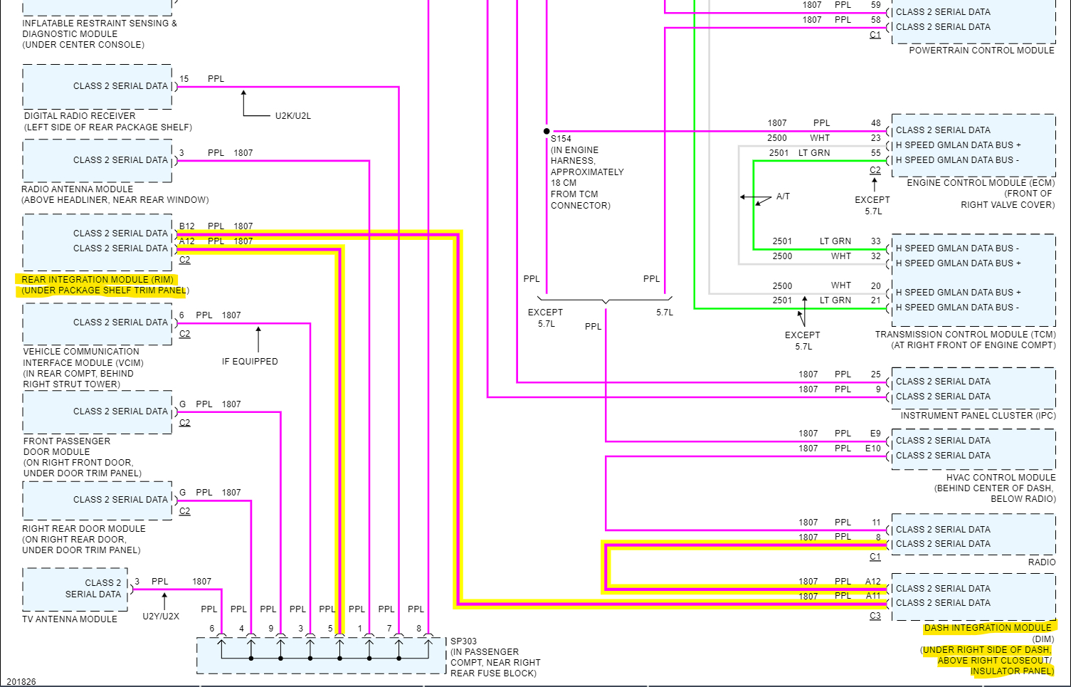 Diagrams 1 and 2(lower half) are the Dash BCM, diagrams 3 and 4 are the Rear BCM, and diagrams 5 and 6 is the GM Serial Data network which shows both BCMs in the lower diagram. If there happens to be a module failure issue, you're dealing with the Splice connectors for the network are a good place where you can disconnect each module one by one if needed.