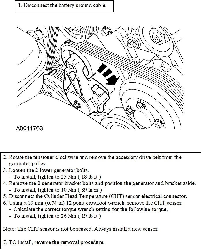 These first two drawings are for the cylinder head temperature sensor you requested. The generator does indeed need to be removed.