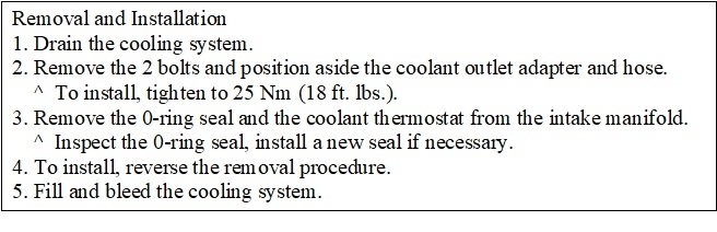 Be aware a properly working CHT sensor is required to set diagnostic fault code P0128. This code won't be solved by replacing the sensor. Code 128 is almost always set due to a thermostat that's sticking open or is opening too soon. If that is what you find, the last two drawings show the procedure for replacing the thermostat.