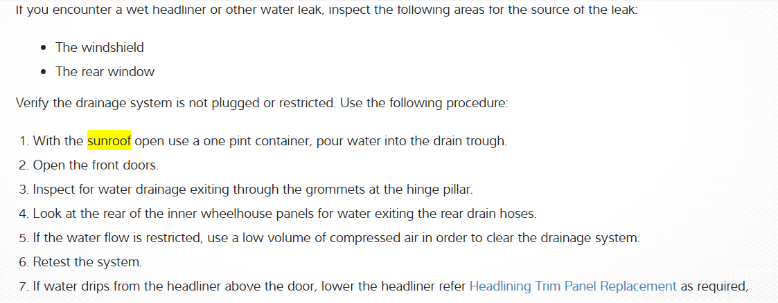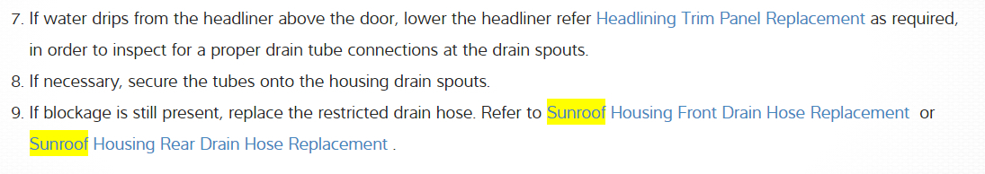 I have included the information that you requested down below in the diagrams. These instructions not only include the locations of all four sunroof drains, they also include step by step factory instructions for the proper cleaning of the drain system.