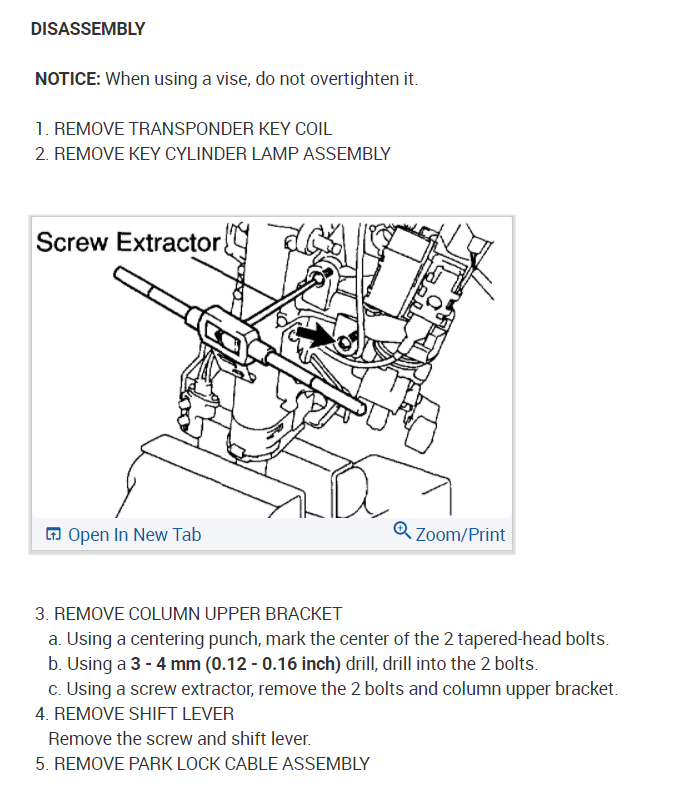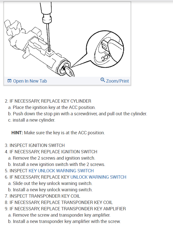 The key lock cylinder needed replacing. I bought one part # 69057-34040. When I put the cylinder in with the key, I can turn the key but cannot get the key out without removing the cylinder.